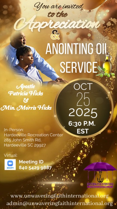 Unwavering Faith International Outreach Ministries is a ministry that develops and teaches all believers in the ART of Prayer, Intercession, Deliverance, and Healing. While praying effectively, believers will become Unwavering in their FAITH, making prayer a LIFESTYLE.