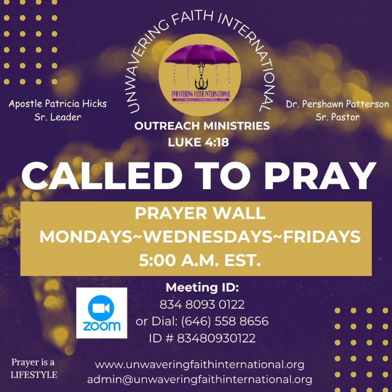 Start your day off with prayer. Join us for prayer every Monday and Wednesday at 5:00 a.m. and Fridays at 12 MIDNIGHT.